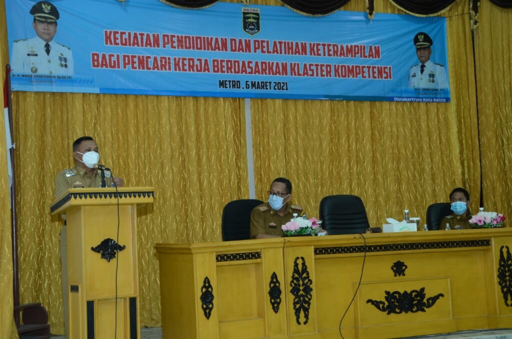 Pada kesempatan itu Wakil Walikota Metro Qomaru Zaman, beserta jajaran menghadiri acara pendidikan dan pelatihan keterampilan pencari kerja berdasarkan klaster kompetensi di gedung LEC Kartikatama Metro yang diselenggarakan oleh Dinas Tenaga Kerja dan Transmigrasi Kota Metro.