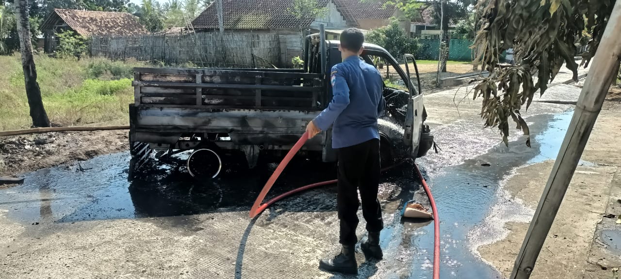 Mobil Jenis Pick-Up Yang Membawa 4 Jerigen Bensin Terbakar di Natar