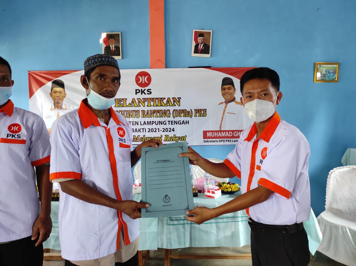 Lampung Tengah, etalaseinfo.com (SMSI) – Ranting PKS Trimurjo,Bumiratu Nuban dan Bekri di lantik masa bakti 2021-2024, di dusun Bumi agung Bumiratu Nuban Lampung Tengah 06 Juni 2021.