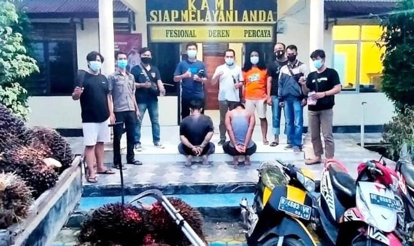 Tidak lama kemudian melihat pelaku JULI yang baru saja keluar dari arah dalam kebun Kelapa sawit milik warga dengan menggunakan 1 (satu) unit sepeda motor yamaha mio No.Pol : BE 8989 LR dan diikuti oleh 2 (dua) orang yang mengendarai 1 (satu) unit mobil pick suzuki cary warna hitam No.Pol : BE 8166 LV bermuatan buah kelapa sawit, ketika Pelaku sudah berada sekira 500m (lima ratus meter) dari kebun kelapa sawit milik warga, langsung melakukan pencegatan dan mengamankan pelaku.