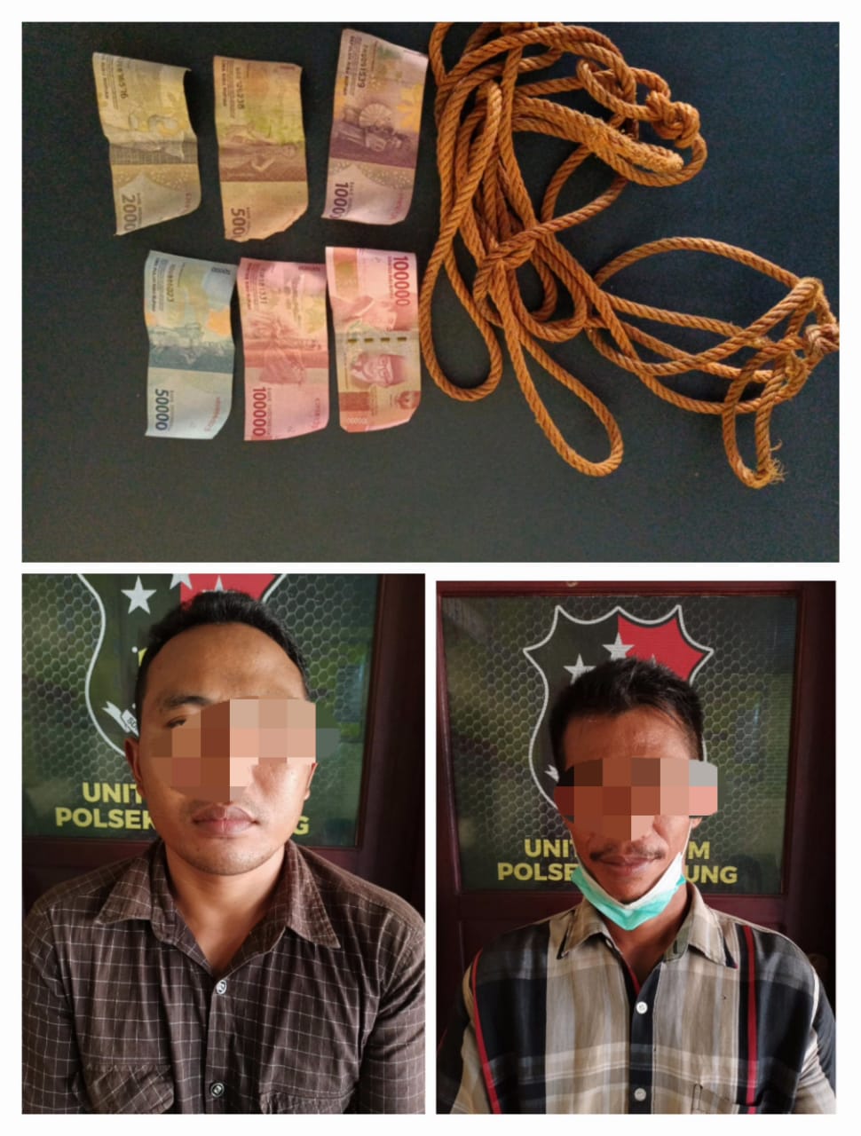 Atas kejadian tersebut, Unit Reskrim Polsek Katibung terus melakukan penyelidikan keberbagai tempat, sehingga pada hari kamis (5/8/2021)sekitar pukul 09.30 wib berhasil mengamankan dua pelaku, bersama barang buktinya ke Mapolsek Katibung berupa Uang tunai sebesar Rp. 267.000, tali. Tambang ” pungkasnya. (Hm-S-J))