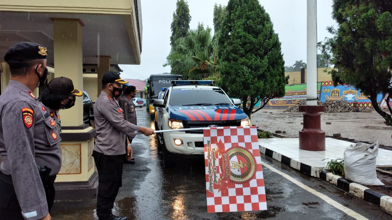 Personel dilepas Kapolres Tanggamus AKBP Oni Prasetya, SIK di halaman Mapolres bersama Wakapolres Kompol Heti Patmawati, SH. SIK serta para pejabat utama (PJU) Polres, Senin (7/12/20).