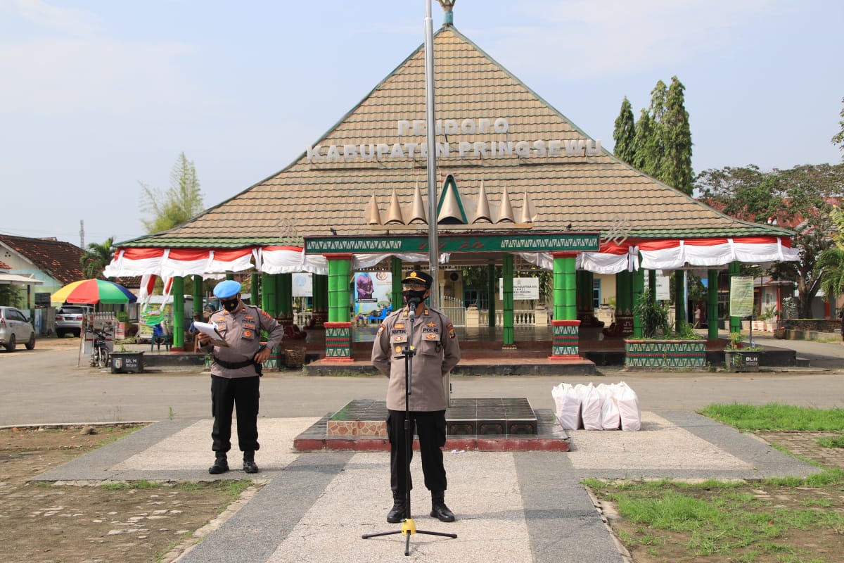 Kabag Ops AKP Martono, SH. MH menyampaikan apel dilaksanakan dalam rangka kesiapan pengamanan kunjungan kerja menteri koperasi dan UKM RI Teten Masduki diwilayah Pringsewu.
