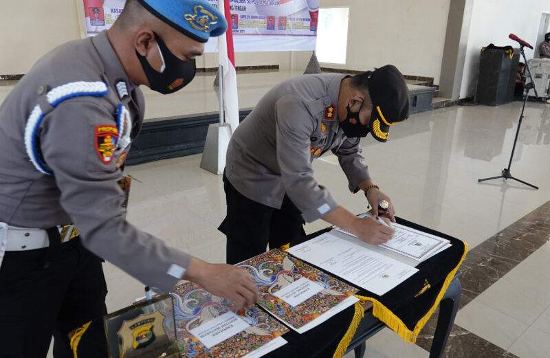 Serah Terima Tiga jabatan Kapolsek serta Kasat Intelkam Dipimpin Kapolres Lampung Tengah