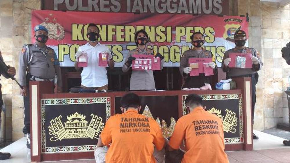 “Berdasarkan penyelidikan tersebut, kemarin Rabu, 7 Oktober 2020 pukul 14.00 Wib dilakukan penggerebekan sehingga berhasil ditangkap 3 tersangka berinsial SO, GU dan RA,” ungkap Kompol Heti Patmawati didampingi Kabag Ops Kompol Bunyamin, SH. MH dan KasatresNarkoba AKP I Made Indra Wijaya, SH dalam konferensi pers menghadirkan 2 tersangka dewasa di Mapolres Tanggamus, Kamis (8/10/20).