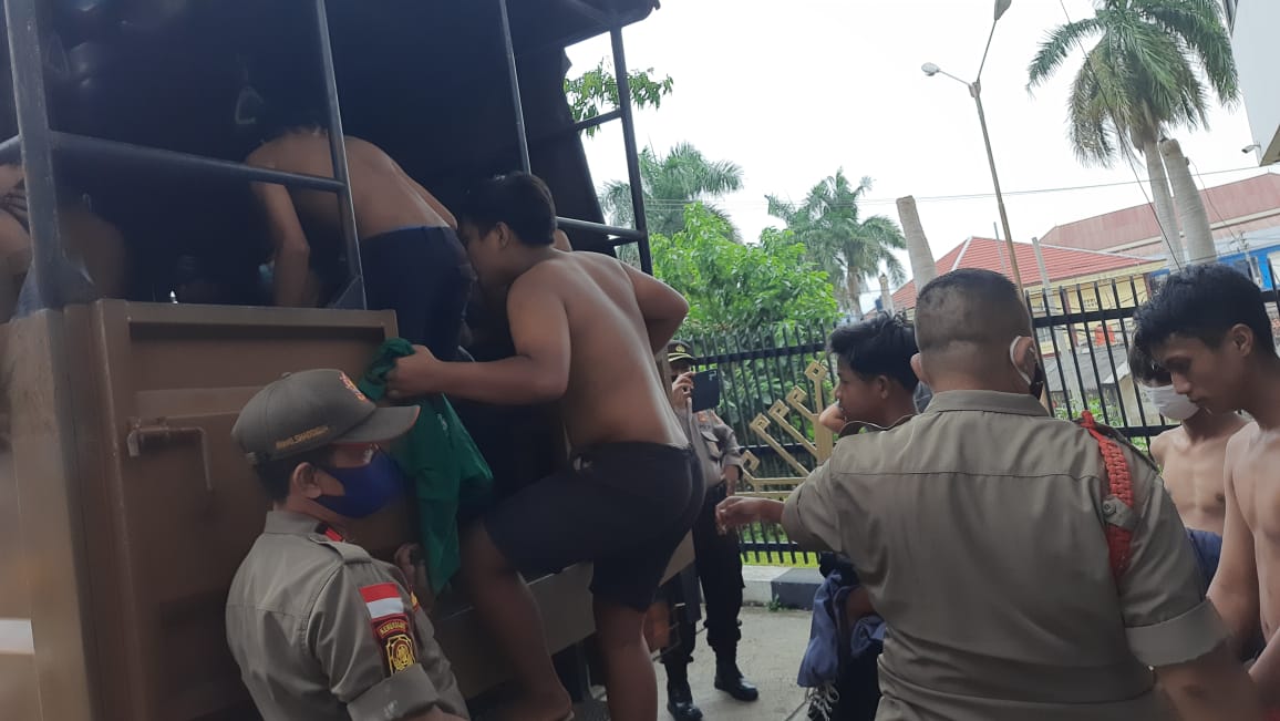 Mereka kemudian dibawa ke kantor polisi terdekat, dengan menggunakan kendaraan truk milik Satpol PP dan dikawal oleh pihak kepolisian.(FS/DUM)