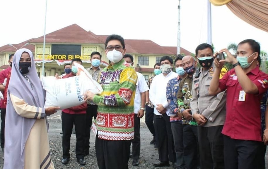 SUKADANA, etalaseinfo.com – Pjs. Bupati Lampung Timur, Fredy menyerahkan secara simbolis bantuan sosial beras KPM PKH bagi keluarga penerima manfaat program keluarga harapan Kabupaten Lampung Timur, Kamis (8/10/2020) yang bertempat Di depan halaman PEMDA Lampung Timur yang sekaligus pelepasan armada pengangkut bantuan sosial beras KPM PKH.