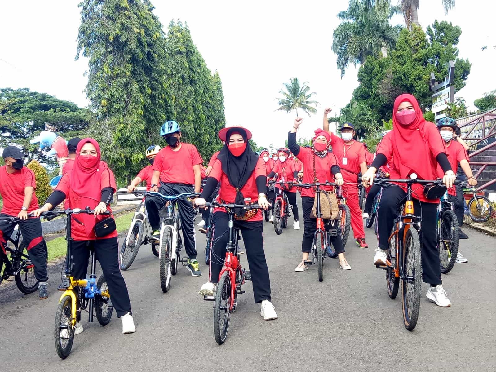 Tanggamus etalaseinfo.co.id – Bupati Tanggamus Hj Dewi Handajani, mengikuti gowes bareng dalam rangka peringatan Hari Ulang Tahun (HUT) yang ke 1, klub sepeda Gowes Cantik Kota Agung (GOCAK), Jum’at (8/10/2021).