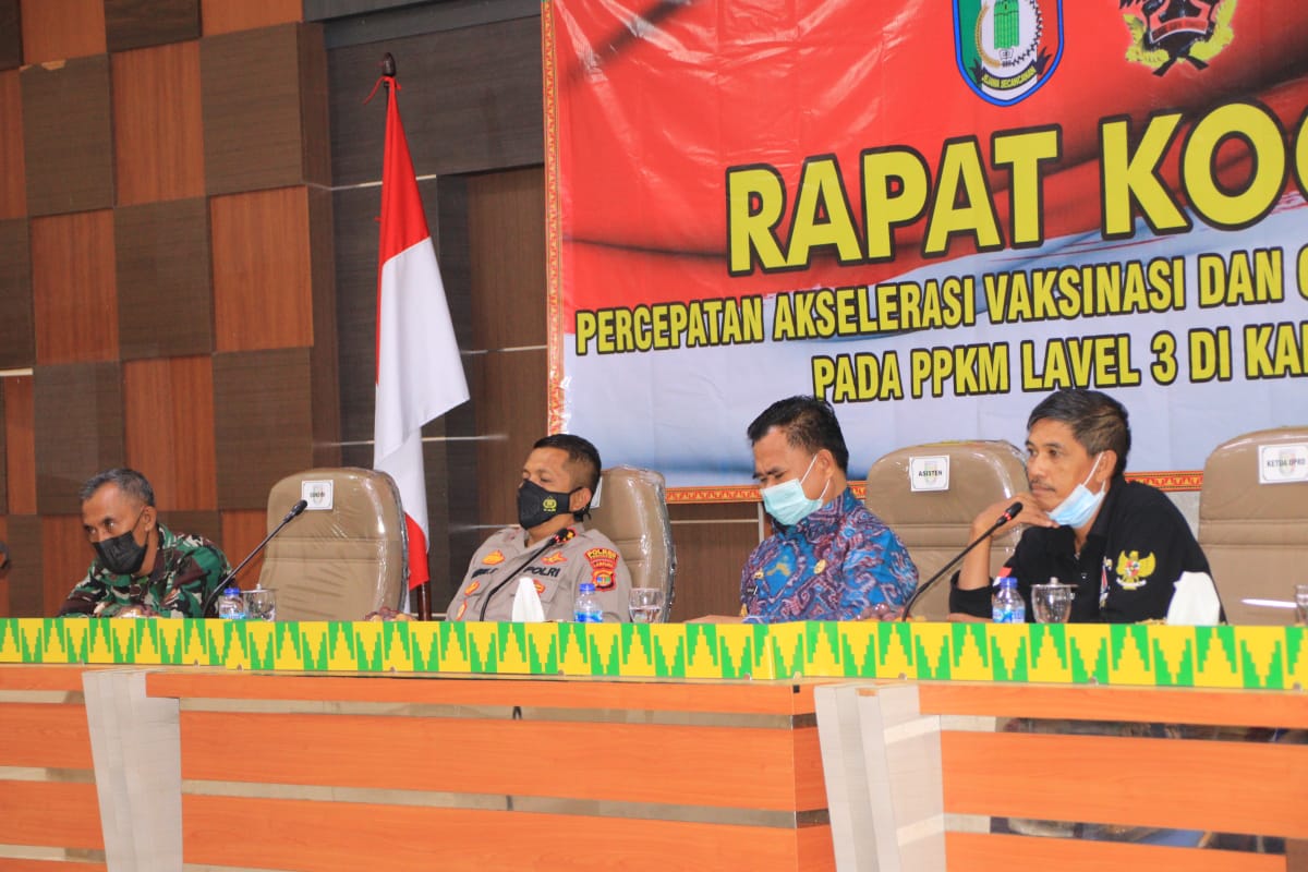 Pringsewu, etalaseinfo (SMSI) – Polres Pringsewu bersama instansi terkait, tokoh masyarakat dan tokoh agama menggelar rapat koordinasi percepatan akselerasi vaksinasi dan optimalisasi penanganan Covid-19 pada PPKM Level-3 di aula utama Bupati Pringsewu. Jumat (8/10/21).