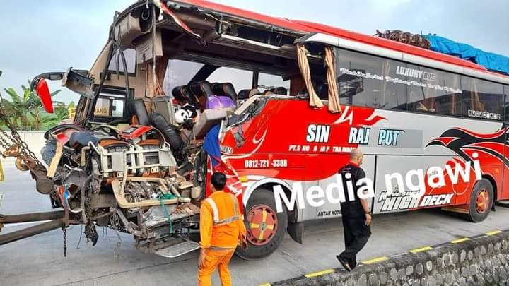 Setelah menabrak, bus berhenti di lajur lambat dan truk berhenti di bahu jalan. Akibat kejadian tersebut empat penumpang tewas dan beberapa lainnya mengalami luka-luka dan dirawat di RSI Attin Husada Ngawi.