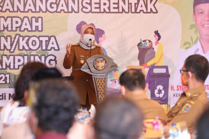 Saibumi.com (SMSI) Bandarlampung – Wakil Gubernur Lampung, Chusnunia, menghadiri Pencanangan Serentak Aksi Peduli Sampah di 15 Kabupaten/Kota se-Provinsi Lampung, bertempat di Kantor Dinas Lingkungan Hidup Provinsi Lampung Jl. Basuki Rahmat No.10 Bandar Lampung, Selasa (09/02).