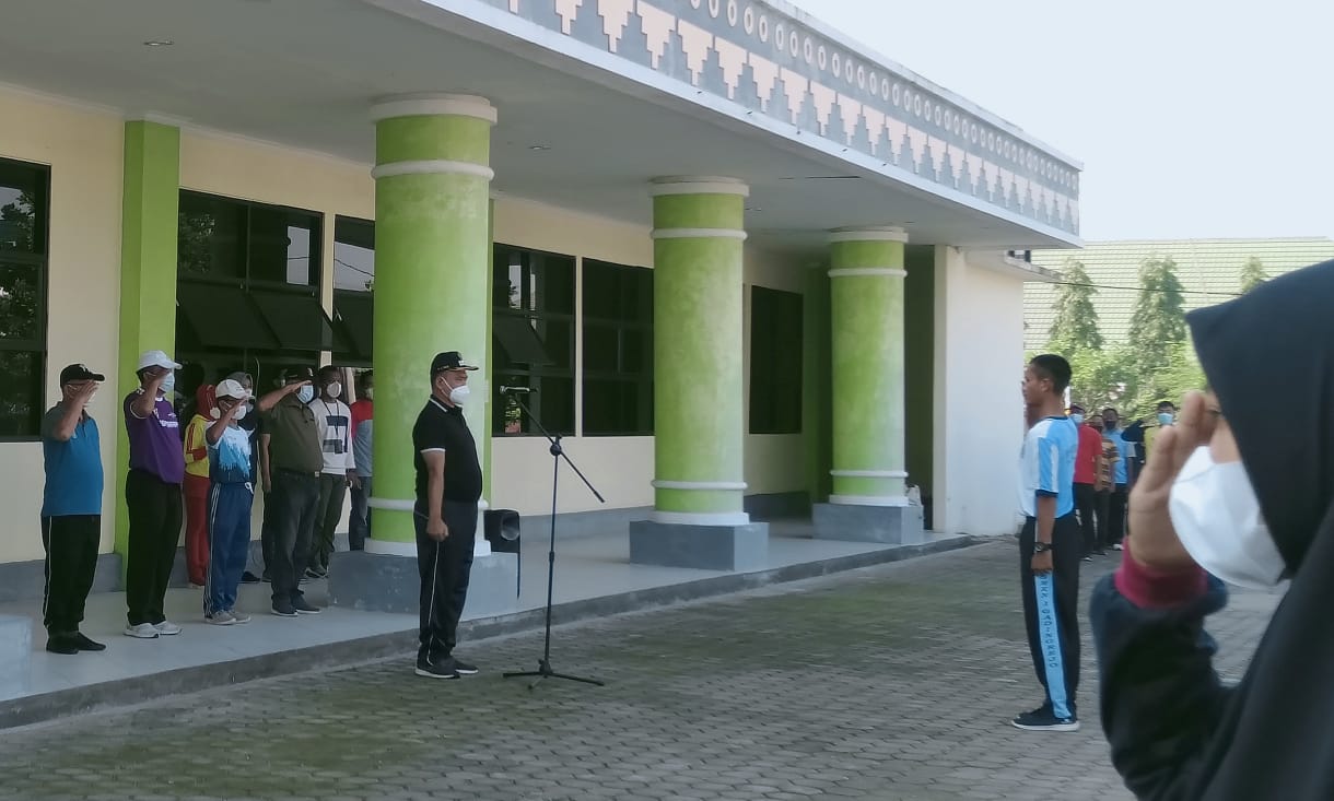PRINGSEWU, etalaseinfo.com (SMSI) – Wakil Bupati Pringsewu Dr.H.Fauzi, SE, M.Kom., Akt., CA, CMA menjadi pembina apel jajaran Dinas Pemuda, Olahraga dan Pariwisata, Dinas Sosial dan Dinas PM-PTSP Kabupaten Pringsewu, beserta 36 anggota Pasukan Pengibar Bendera Pusaka (Paskibraka) dan 19 finalis Muli Mekhanai Kabupaten Pringsewu di halaman Kantor DisporaPar Pringsewu, Jumat (9/4/21).