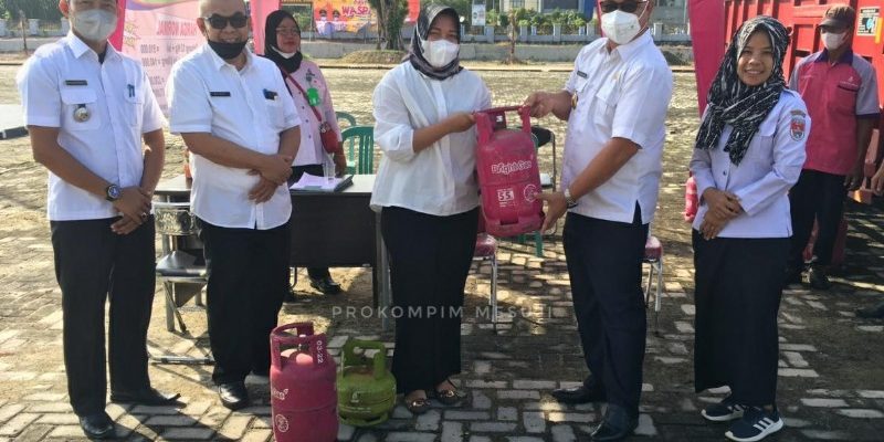 Mesuji, etalaseinfo, Pemerintah Kabupaten Mesuji melalui Bagian Ekbang dan Dinas Koperindag Kabupaten Mesuji melakukan fasilitasi penukaran tabung gas elpiji subsidi 3 kilogram bagi Aparatur Sipil Negara (ASN) dengan tabung gas elpiji nonsubsidi bekerja sama dengan PT Pertamina melalui distributor PT Gusnaini Jaya Putri di halaman kantor Bupati Mesuji, Wiralaga Mulya, Rabu (07/04/2021) lalu.