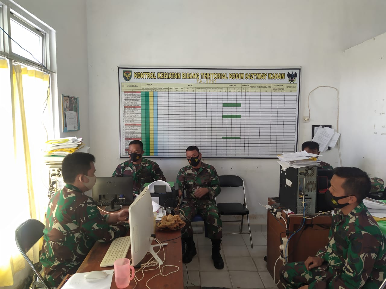 Way kanan, etalaseinfo.com – Pasiter Satgas TMMD ke – 111 Kodim 0427/Way Kanan Kapten Inf A. Yani Folsen melaksanakan rapat bersama Anggota Staf Ter untuk menyiapkan tentang Acara Pembukaan TMMD ke-111 di Kampung Negeri Batin Kecamatan Umpu Semenguk Kab. Way Kanan rabu (09/06/2021)