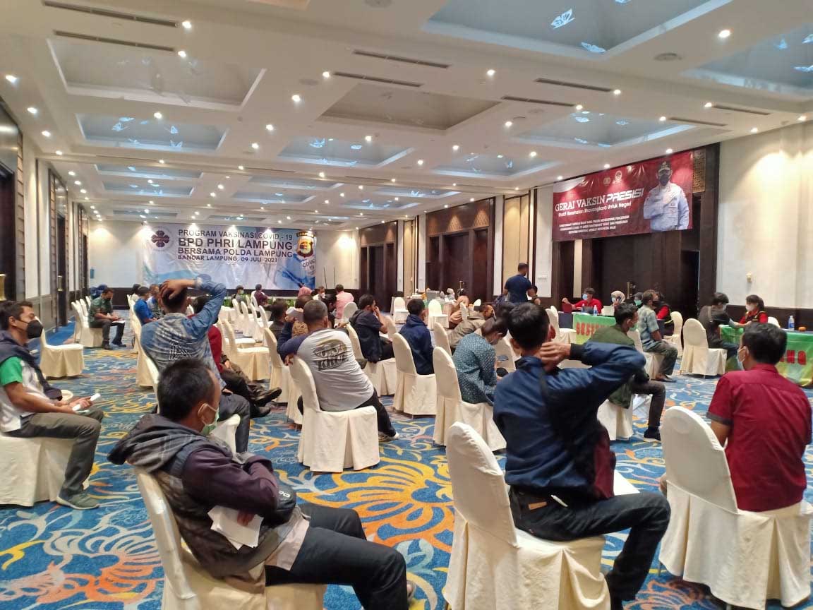 Bandar Lampung, etalaseinfo.com (SMSI) – Polda Lampung bersama BPD Perhimpunan Hotel dan Restoran Indonesia (PHRI) Lampung menggelar Vaksinasi Covid-19 untuk tahap ke-2, bertempat di Ballroom Sheraton Lampung Hotel, kegiatan digelar. Jum’at (09/07)