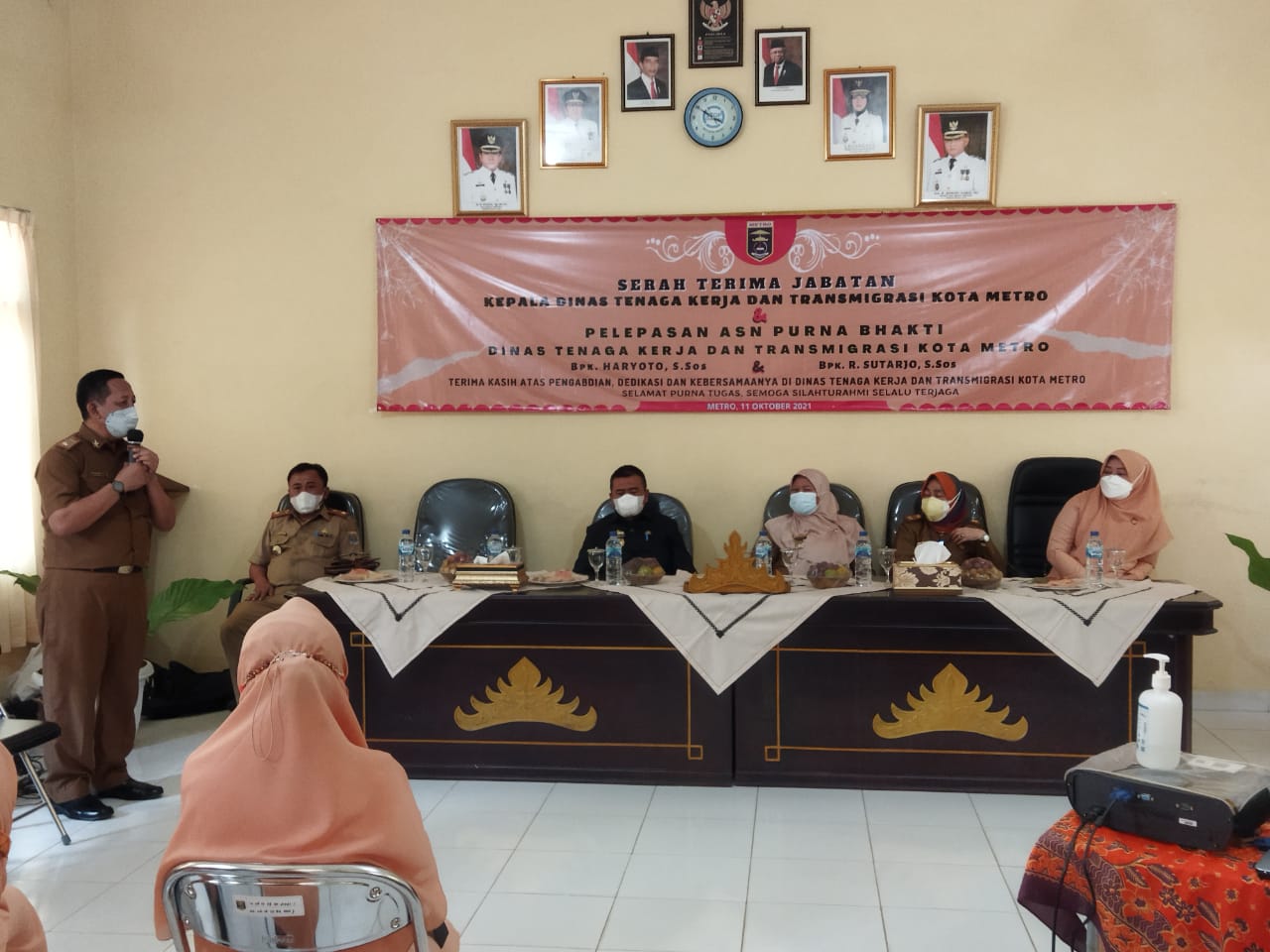 Pada acara Sertijab tersebut di Wakilkan oleh Sekertaris Daerah Kota Metro dan para Staf Disnaker Kota Metro. Acara berlangsung di Aula Dinas setempat, Senin (11/10/21).