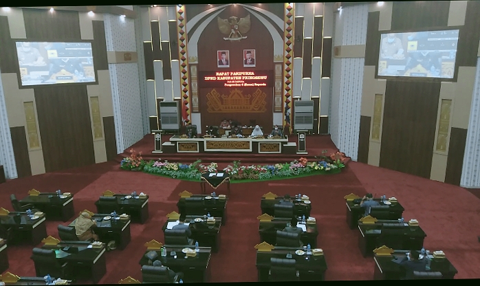 Rapat yang dipimpin oleh Ketua DPRD Pringsewu Suherman, SE didampingi Wakil Ketua I Hj.Mastuah dan Wakil Ketua II H.Rizky Raya ini dihadiri Bupati Pringsewu H.Sujadi dan Wakil Bupati Dr.H.Fauzi, SE, M.Kom., Akt., CA, CMA serta jajaran Pemkab dan Fokorpimda serta sejumlah elemen lainnya di Kabupaten Pringsewu.