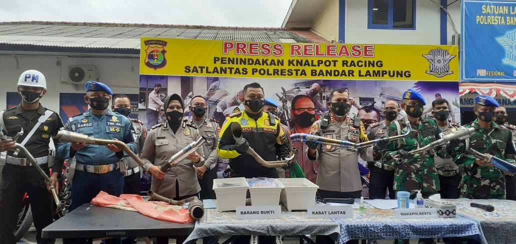 Dilansir Lampungpro.co jaringan Siberindo.co, terdapat ratusan jenis dan merk knalpot racing yang disita Satlantas Polresta Bandar Lampung. Beberapa pemilik kendaraan bermotor tersebut juga sudah mengambil dan bersiap tidak akan mengulanginya kembali. (Andi)
