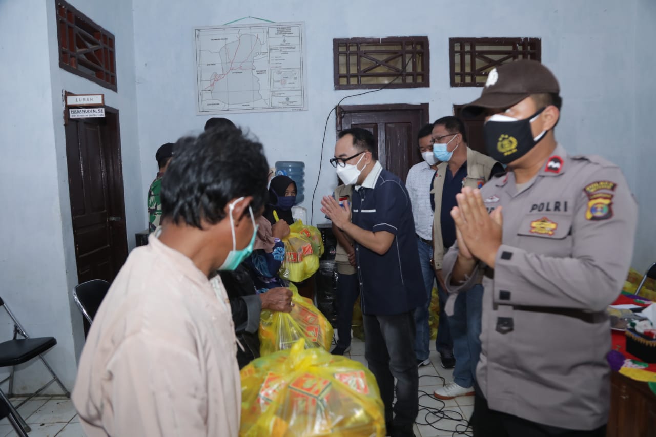 Bantuan sembako tersebut dibagikan kepada masyarakat yang terkena dampak akibat diterpa angin puting beliung beberapa hari lalu.