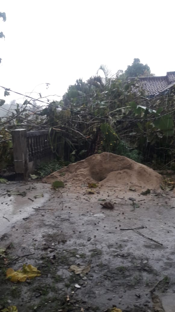 “Pohon ini tadi ambruk ke tiang listrik dan jatuh lagi ke halaman rumah, untung aja kabel listriknya gak ngelupas” kata warga setempat.