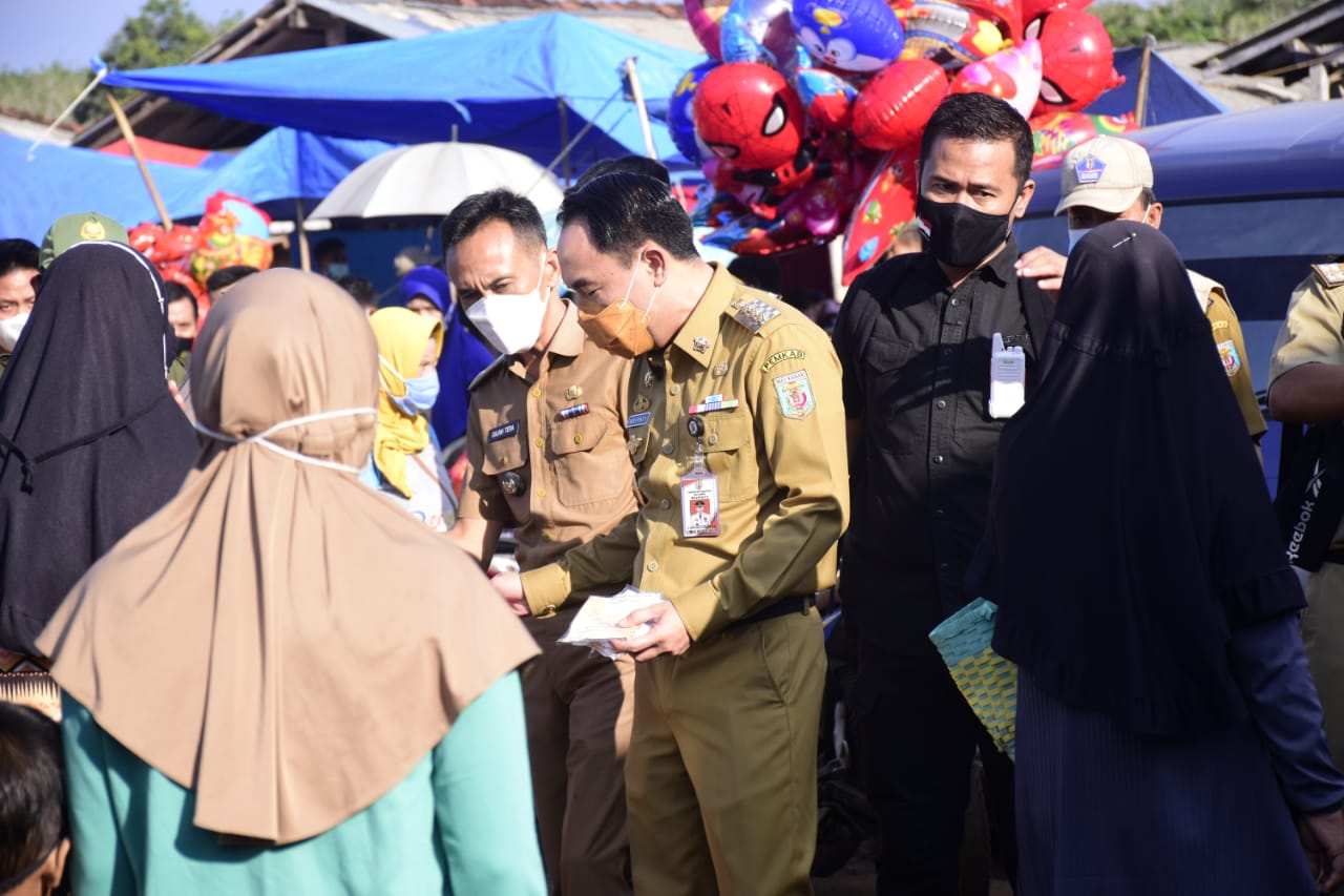 Pada Kegiatan Tersebut Bupati Adipati Membagikan Masker Gratis Baik Kepada Pembeli Maupun Pedagang serta Menghimbau Masyarakat untuk disiplin dalam menerapkan protokol kesehatan