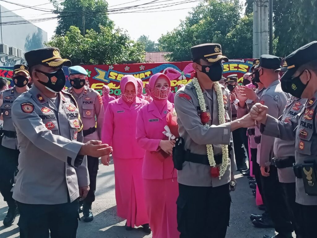 Setelah Acara Pisah Sambut, Kapolres Lampung Tengah AKBP Wawan Setiawan, S.IK didampingi Pejabat Utama, para Kapolsek, Perwira, Brigadir dan PNS Polres Lampung Tengah mengantarkan AKBP Popon Ardianto Sunggoro, S.IK., S.H diiringi prosesi pedang pora meninggalkan Mapolres Lampung Tengah dan selanjutnya akan berpindah tugas ke Polda Lampung sebagai Wadir Reskrimsus Polda Lampung. (Rls-Rul)