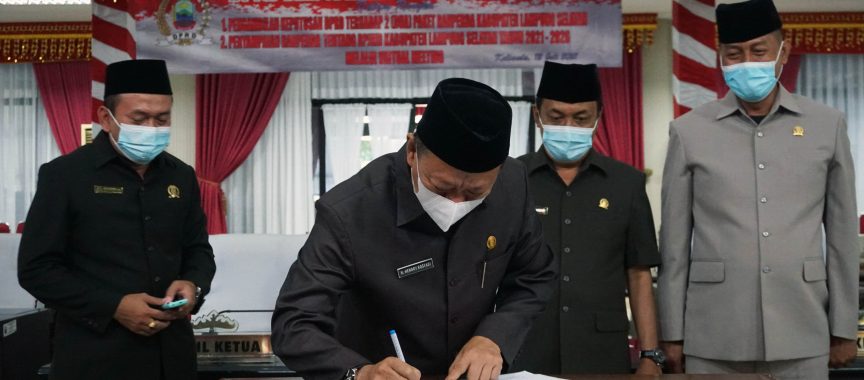 Dalam rapat paripurna yang dipimpin langsung Ketua DPRD Lampung Selatan, H. Hendry Rosyadi, SH, MH itu, delapan fraksi yang ada di DPRD setempat menyatakan menyetujui dua paket Raperda tersebut untuk ditetapkan menjadi Peraturan Daerah (Perda). Adapun, kesepakatan itu ditandai dengan penandatanganan Memorandum of Understanding (MoU) yang dilakukan antara pihak eksekutif dan legislatif secara virtual.