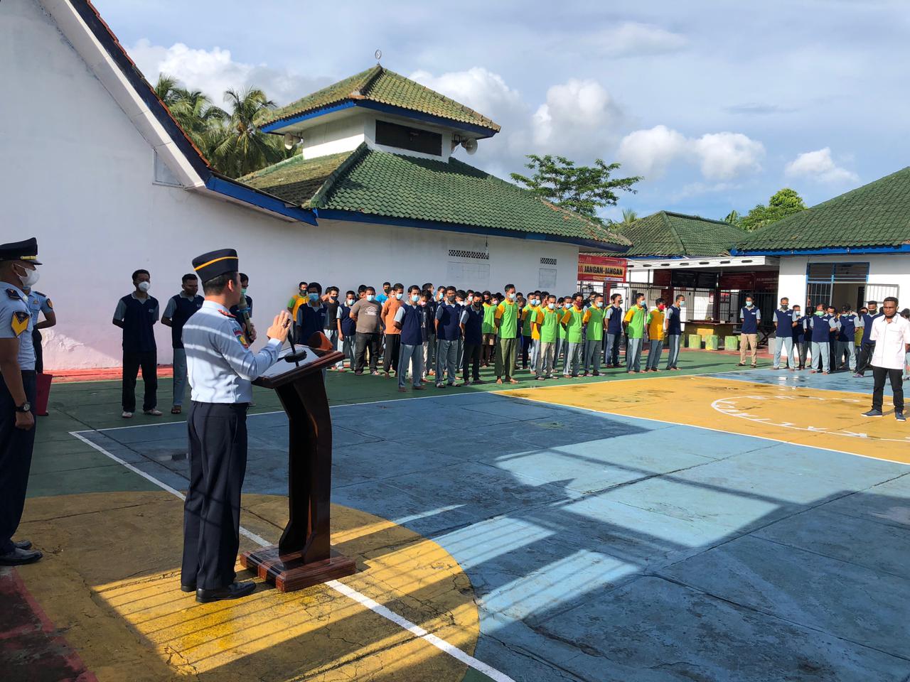 Oleh karena itu, Warga Binaan Lembaga Pemasyarakatan Kelas IIA Kalianda melaksanakan Upacara Bendera di Lapangan Futsal Lapas Kalianda,Kegiatan Upacara Bendera dilaksanakan oleh ratusan Warga Binaan Pemasyarakatan Lapas Kalianda dengan memperhatikan protokol Kesehatan Pencegahan Covid – 19. Senin (12/7).