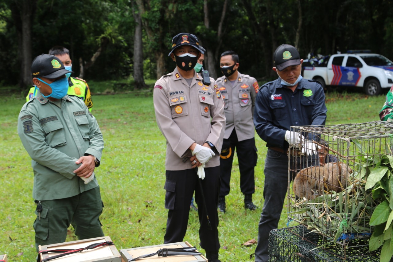 Kapolres Lampung Timur AKBP Wawan Setiawan, melalui Kasubag Humas AKP Heru Prasongko mengatakan bahwa proses pelepasan ratusan satwa liar tersebut, dilaksanakan di seksi I RPTN Way Kanan dan Pusat Latihan Hajah Taman Nasional Way Kambas (TNWK).