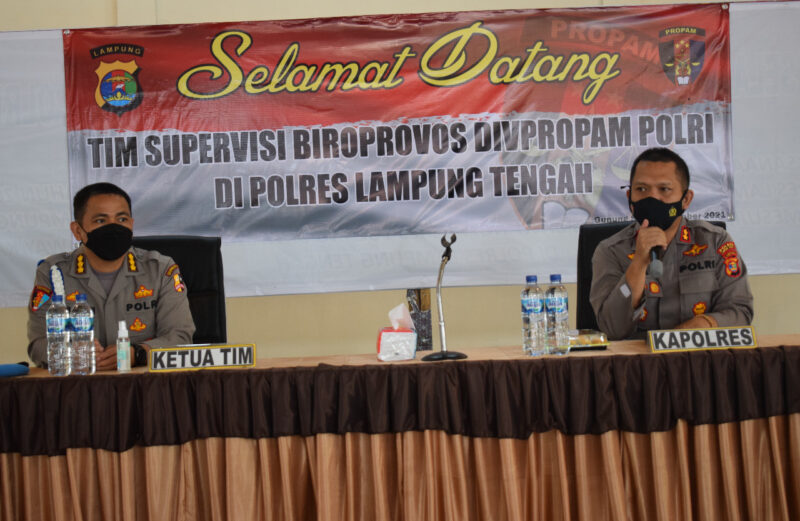 Kombes Pol Ahmad Sulaiman, S.IK.,MH sebagai Ketua Team mengucapkan terima kasih atas penerimaan dari Polres Lampung Tengah yang luar biasa, Supervisi ini bertujuan untuk melakukan pengecekan berkaitan dengan penyelesaian pelanggaran disiplin kemudian hal-hal mekanisme lainnya termasuk juga dalam rangka pembinaan disiplin yang ada.