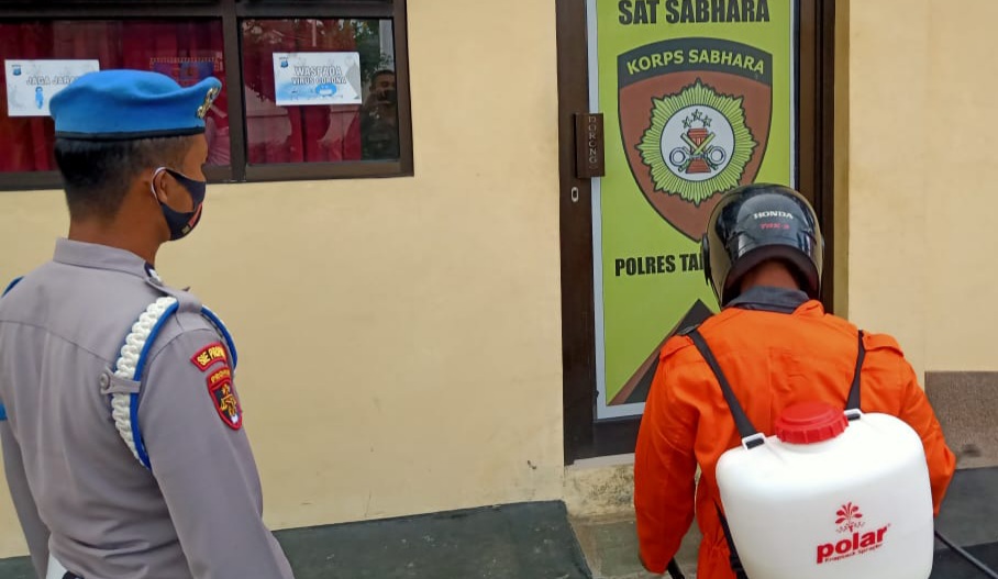 Kasipropam Iptu Bambang Purwadi mengatakan, penyemprotan dilakukan meliputi ruang kerja, ruang pelayanan hingga tempat ibadah yang berada di komplek Mapolres.