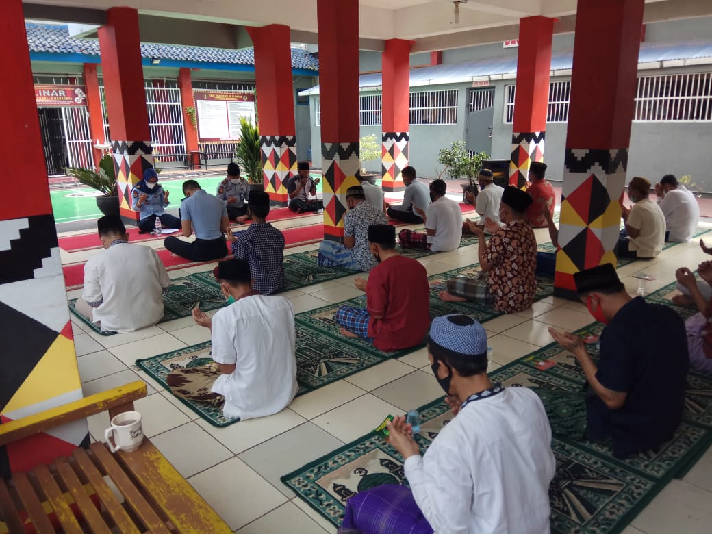 Kegiatan diawali dengan Shalat Taubat sebanyak 2 rakaat dilanjutkan dengan doa bersama. Tampak warga binaan berderai air mata saat memohon kepada Allah SWT agar mengangkat Pandemi COVID 19 ini dari bumi Indonesia.
