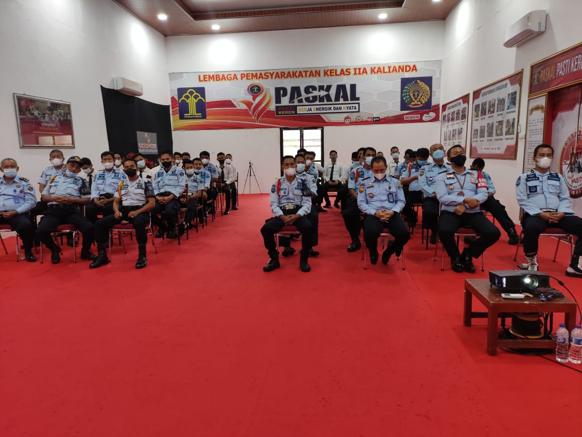 Penguatan di Aula Lapas Kalianda dilaksanakan dengan mematuhi Protokol Kesehatan Pencegahan Covid-19.