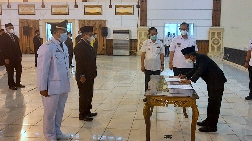 Pelantikan berlangsung di Gedung Pusiban Komplek Kantor Pemkab Lamtim, Rabu sore (8-9-2021).