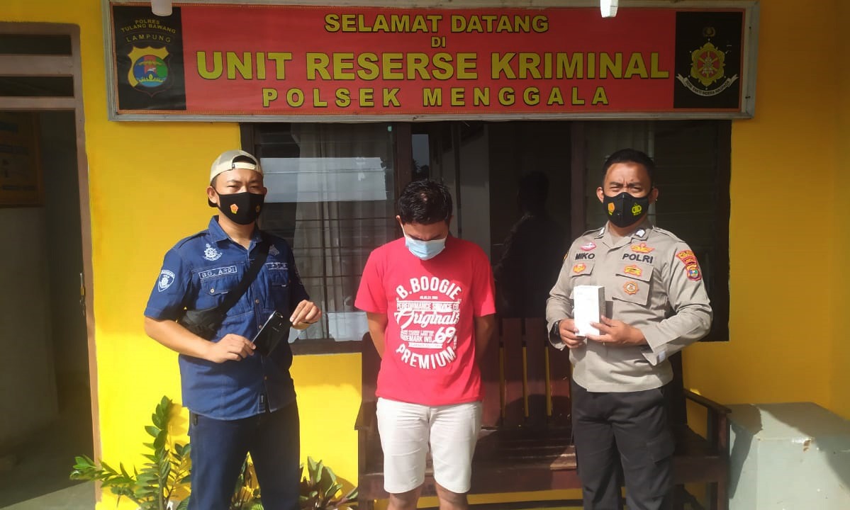 Seorang pria berinisial HA (25), berprofesi wiraswasta, warga Jalan 4 Kibang, Kelurahan Menggala Kota, Kecamatan Menggala, Kabupaten Tulang Bawang, ditangkap petugas gabungan dari Polsek Menggala dan Tekab 308 Polres Tulang Bawang.