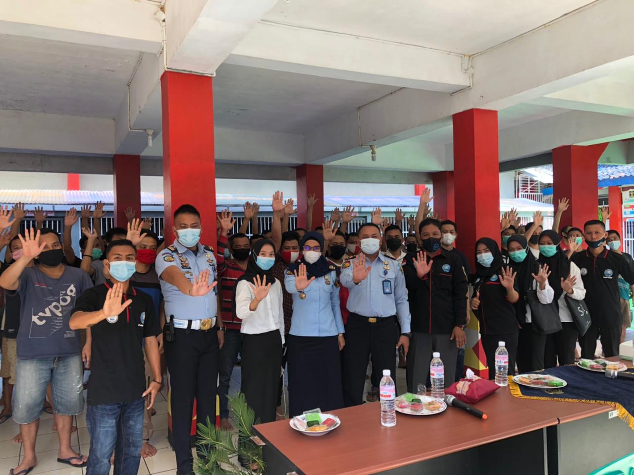Meskipun ditutup masker, nampak wajah antusias WBP mengikuti sosialisasi. Diakhir kegiatan, seluruh petugas dan peserta sosialisasi melakukan yel yel anti Narkoba yang disambut riuh tepuk tangan WBP.
