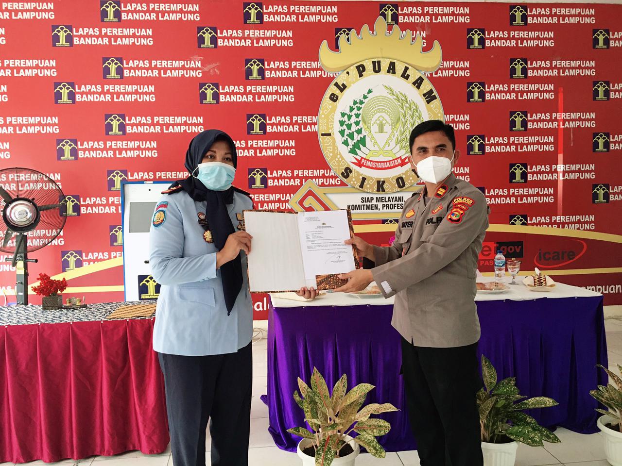 Lapas Perempuan Lampung menjalin kerjasama melalui penandatanganan Perjanjian Kerja Sama (PKS) dengan Badan Narkotika Nasional (BNNK) Lampung Selatan serta penandatanganan surat keterangan bebas dari Halinar dari Polsek Jatiagung.