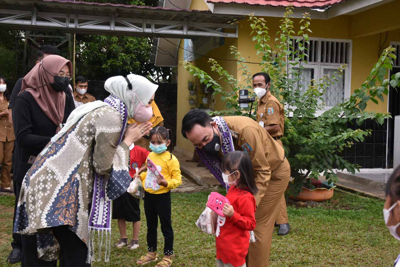 Way Kanan, etalaseinfo (SMSI) Bupati H. Raden Adipati Surya, S.H.,M.M didampingi Bunda PAUD Kabupaten, Bunda Hj. Dessy Afriyanti Adipati melakukan Kunjungan ke PAUD SKB Blambangan Umpu Kecamatan Blambangan Umpu untuk menyapa anak-anak PAUD/TK pada Kegiatan Pembelajaran Tatap Muka (PTM) Terbatas, Selasa (14/09/2021).