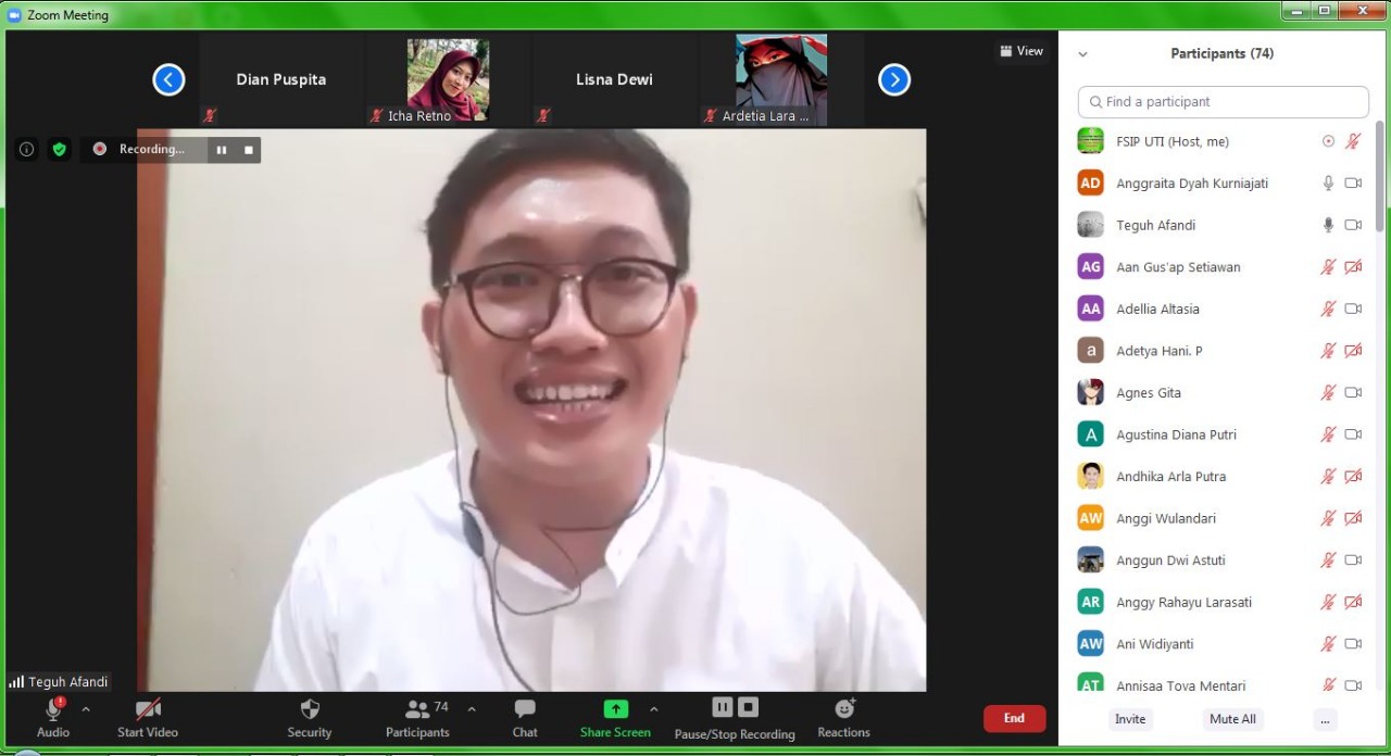 Saibumi.com (SMSI), Bandar Lampung – Program studi Sastra Inggris Universitas Teknokrat Indonesia (UTI) menggelar “Virtual Talk Vol. 1” dengan mengundang editor bidang sastra dari Gramedia Pustaka Utama, Teguh Afandi.