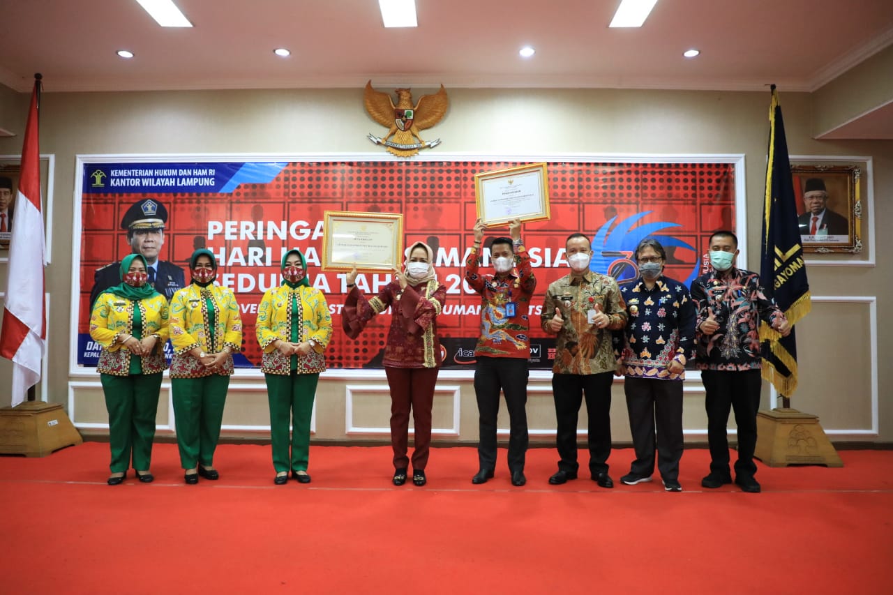lintasmerah.com- Pemerintah Kabupaten Tulang Bawang kembali menerima penghargaan dari Kementrian Hukum dan Hak Azazi Manusia Republik Indonesia (Kemenkum HAM RI) untuk kabupaten peduli HAM yang diserahkan oleh Gubernur Lampung yang di wakili oleh Sekretaris Daerah Provinsi Lampung Ir Fahrizal Darminto, M.A di Kantor Wilayah Kementrian Hukum dan HAM Lampung, Senin (14/12/20).