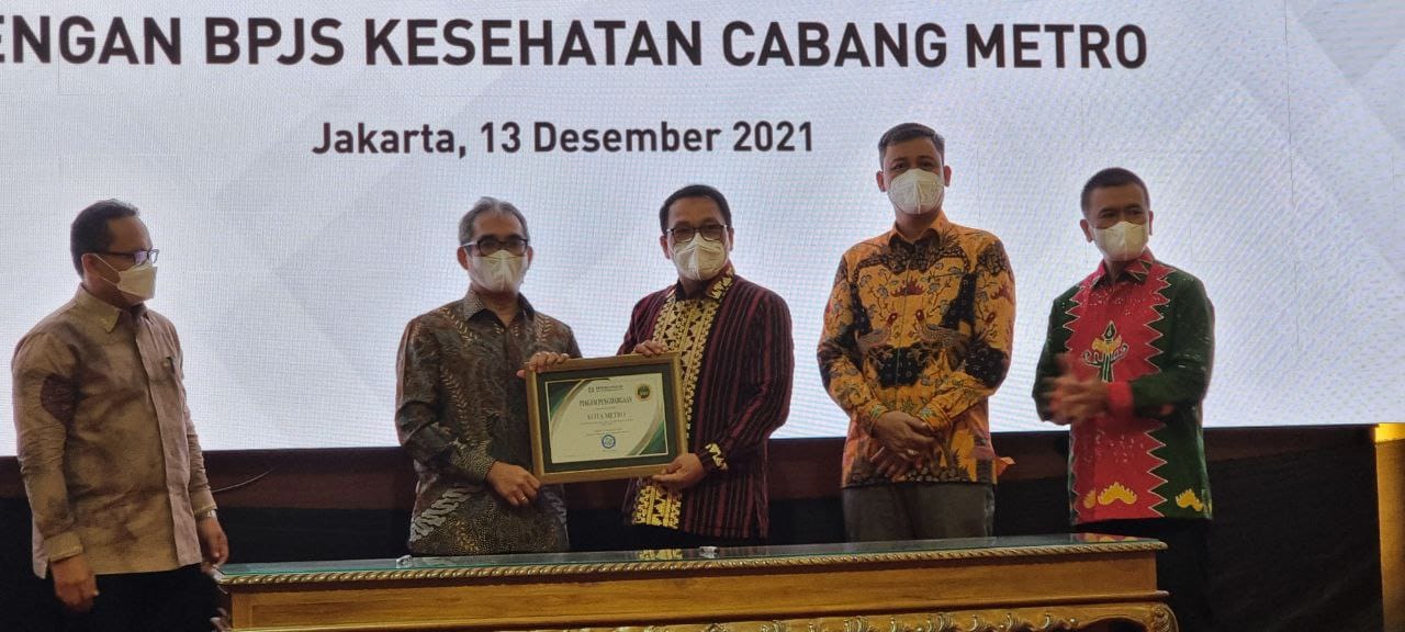 Metro, etalaseinfo (SMSI) –  Walikota Metro Wahdi Sirajuddin menghadiri acara sekaligus menerima penghargaan atas tercapainya Jaminan Kesehatan Semesta/Universal Health Coverage (UHC), di Ballroom Kantor Pusat BPJS, Jakarta, Senin (13/12/2021).
