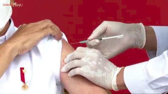 Vaksinasi yang dilakukan di Istana Kepresidenan Jakarta itu disiarkan melalui live streaming YouTube Sekretariat Presiden.