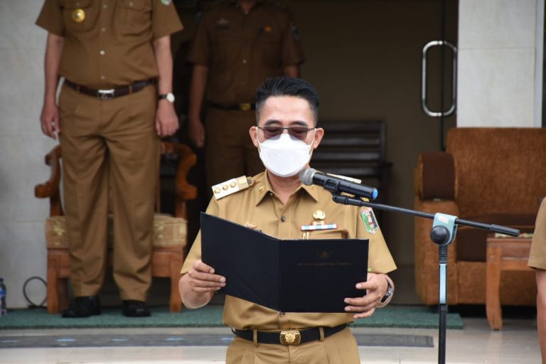 Bupati Lampung Timur Dalam penyampaiannya mengucapkan selamat kepada para pejabat dan menghimbau untuk dapat menjalankan tugas dengan sebaik-baiknya.