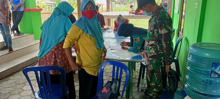 Kopda Imam Hariyono mengatakan, bersama anggota TMMD dan Babinsa Koramil Tambakrejo membantu Dinas Kependudukan dan Catatan Sipil Kabupaten Bojonegoro dalam percepatan proses pembuatan KTP dengan ikut membagikan nomor antrian kepada masyarakat yang hendak mengurus KTP dan KK.