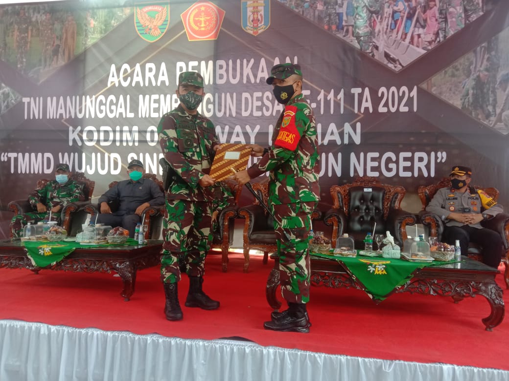 Way Kanan, etalaseinfo.com (SMSI)  –  Pembukaan TMMD Ke-111 Kabupaten Way Kanan Tahun 2021 Halaman Balai Kampung Negeri Batin Kecamatan Umpu Semenguk Kabupaten Way Kanan selasa 15/06/2021.
