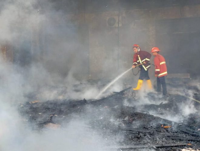 BANDAR LAMPUNG, FS – Api melahap Gedung Olah Raga [GOR] Saburai di Kota Bandar Lampung, Selasa siang, 15 September 2020, sekira pukul 15.00 WIB.