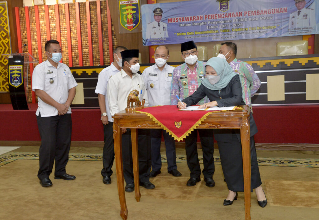 Metro, etalaseinfo.com (SMSI) – Pemerintah Kota Metro menyelenggarakan Musyawarah Perencanaan Pembangunan (Musrenbang) dalam rangka penyusunan Rencana Pembangunan Jangka Menengah Daerah (RPJMD) Kota Metro Tahun 2021-2026 di Aula setempat, Rabu (16/06/2021).