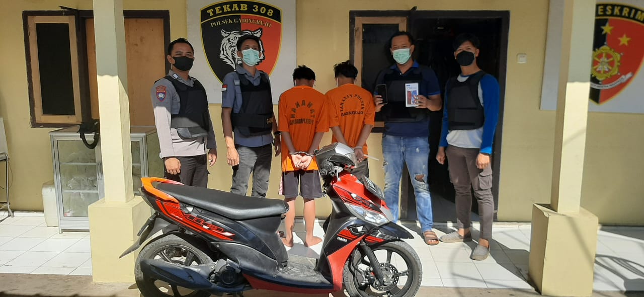 Kapolsek Gadingrejo Iptu AY Tobing mewakili kapolres Pringsewu AKBP Hamid Andri Soemantri, SIK menerangkan Kedua pelaku diduga telah melakukan pencurian dengan pemberatan (Curat) dengan modus jambret di jalan raya Pekon Tulung Agung kecamatan Gadingrejo Pringsewu pada Jumat 11 Juni 2021 jam 16.00 Wib terhadap warga Pekon Tulung Agung kecamatan Gadingrejo bernama Lilis Yulia (15).