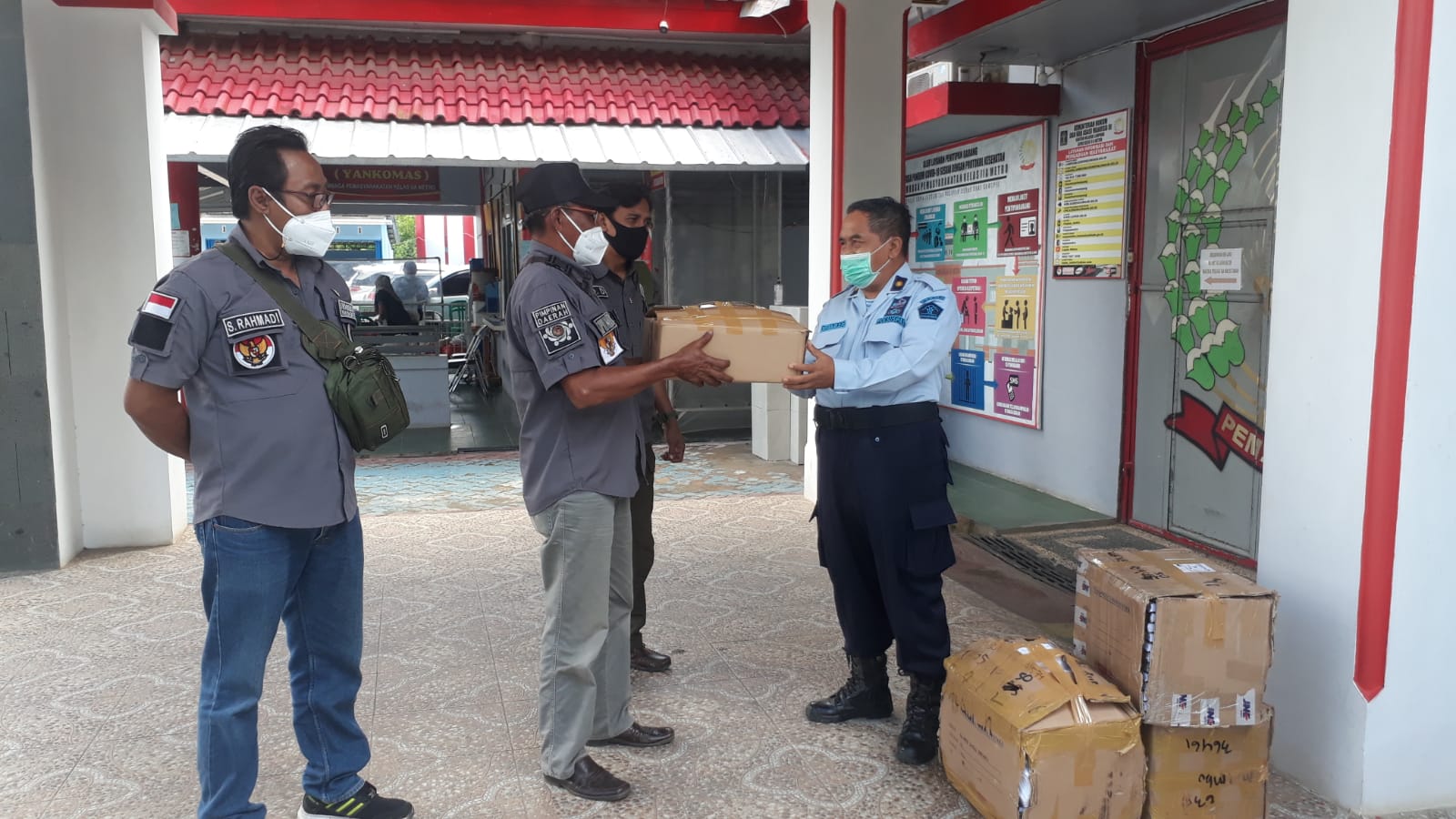 Kasi Binadik, Sutarjo secara simbolis menerima langsung paket bantuan sebagai upaya pencegahan penyebaran Covid-19 dan mendukung pelaksanaan pembinaan kepribadian di Lapas Metro;