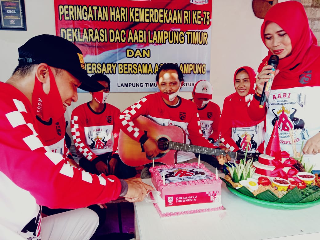 Lampung (Bumi1.com) Dalam rangka memperingati HUT RI yang ke-75 dengan semangat Kemerdekaan Republik Indonesia semakin maju, Agus – Agus Bersaudara Indonesia (AABI) mendeklarasikan Dewan Agus Cabang (DAC) Lampung, AABI Anniversary bersama Agus – Agus Lampung, acara berlangsung dikediaman rumah Agus Putra Eka Jasutra di Desa Mataram Baru Kecamatan Mataram Baru Lampung Timur. Senin (17/08/2020).